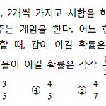 갑과 을은 바둑돌을 \(3\) 개, \(2\) 개씩 가지고 시합을 하여 진 사람이 이긴 사람에게 바둑돌 한 개를 주는 게임을 한다. 어느 한 사람의 바둑돌이 전부 없어질 때까지 게임을 할 때, 갑이 이길 확률은? (단, 한 번의 시합에서 비기는 경우는 없고, 갑, 을이 이길 확률은 각각 \(\large \frac{1}{2}\) 이다. ) ① \(\large \frac{2}{3}\) ② \(\large \frac{3}{4}\) ③ \(\large \frac{3}{5}\) ④ \(\large \frac{4}{5}\) ⑤ \(\large \frac{4}{7}\) 정답 ③