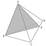 그림과 같이 정사면체 \(\rm ABCD\) 의 모서리 \(\rm CD\) 를 \(3:1\) 로 내분하는 점을 \(\rm P\) 라 하자. 삼각형 \(\rm ABP\) 와 삼각형 \(\rm BCD\) 가 이루는 각의 크기를 \(\theta\) 라 할 때, \(\cos \theta\) 의 값은? \( \left ( 단, \; 0