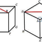오른쪽 그림과 같이 한 모서리의 길이가 \(2\) 인 정육면체 \(\rm ABCD-EFGH\) 가 있다. 직선 \(\rm AG\) 에 평행한 평행 광선에 의하여 이 광선과 수직인 평면에 정육면체 \(\rm ABCD-EFGH\) 의 그림자가 생겼다. 이 그림자의 넓이를 \(S\) 라 할 때, \(S^2\) 의 값을 구하시오. 정답 48