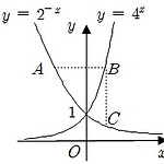 그림과 같이 \(y=2^{-x}\) 의 그래프 위의 한 점 \(\rm A\) 를 지나고 \(x\) 축에 평행한 직선이 \(y=4^x\) 의 그래프와 만나는 점을 \(\rm B\), 점 \(\rm B\) 를 지나고 \(y\) 축에 평행한 직선이 \(y=2^{-x}\) 과 만나는 점을 \(\rm C\) 라 한다. 선분 \(\rm AB\) 의 길이가 \(2\) 이고, 선분 \(\rm BC\) 의 길이를 \(l\) 이라 할 때, \(4l^3\) 의 값을 구하시오. 정답 27