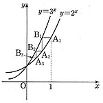 그림과 같이 자연수 \(n\) 에 대하여 곡선 \(y=2^x\) 위의 점 \({\rm A}_n\) 을 지나고 \(y\) 축에 수직인 직선이 곡선 \(y=3^x\) 과 만나는 점을 \({\rm B}_n\) 이라 하자. 또, 점 \({\rm B}_n\) 을 지나고 \(x\) 축에 수직인 직선이 곡선 \(y=2^x\) 과 만나는 점을 \({\rm A}_{n+1}\) 이라 하자. 점 \(\rm A_1\) 의 \(x\) 좌표가 \(1\) 일 때, \(\sum \limits_{n=1}^{10} \overline{{\rm A}_n {\rm B}_n}\) 의 값은? ① \(1-\log_3 2\) ② \(\log_2 3 -1\) ③ \(\left ( \log_2 3 \right )^{10} -1\) ④ \(1- \lef..