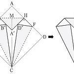 그림과 같이 한 변의 길이가 $ 6 \sqrt{2}$ 인 정사각형 $\rm ABCD$ 모양의 종이가 있다. 선분 $\rm AB$ 와 선분 $\rm AD$ 를 $2:1$ 로 내분하는 점을 각각 $\rm E, \; F$ 라 하자. 선분 $\rm EC$ 를 접는 선으로 하여 삼각형 $\rm EBC$ 를 접었을 때, 점 $\rm B$ 가 옮겨지는 점을 $\rm B'$, 선분 $\rm FC$ 를 접는 선으로 하여 삼각형 $\rm FDC$ 를 접었을 때, 점 $\rm D$ 가 옮겨지는 점을 $\rm D'$ 이라 하자. 점 $\rm B'$ 에서 선분 $\rm AE$ 에 내린 수선의 발을 $\rm G$, 점 $\rm D'$에서 선분 $\rm AF$에 내린 수선의 발을 $\rm H$, 선분 $\rm GH$ 의 중점을 $..