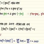 \(f(0)=0,\; g(0)=1\) 인 미분가능한 두 함수 \(f, \;g\) 가 \[f'(x)=g(x),\;\; g'(x)=-f(x)\]를 만족할 때, \(\sum \limits_{n=1}^{2013} \left \{ f(n) \right \} ^2 + \sum \limits_{n=1}^{2013} \left \{ g(n) \right \}^2\) 의 값은? ① \(1\) ② \(2013\) ③ \(4026\) ④ \(2013^2\) ⑤ \(4026^2\) 정답 ②