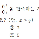 \({\left( {\matrix{2 & x \\ y & z} } \right)^2} = \left( {\matrix{0 & 0 \\ 0 & 0} } \right)\)을 만족하는 정수 \(x,~y,~z\)에 대하여 \(x+y+z\)의 최댓값은? (단, \(x>y\) ) ① 1 ② 2 ③ 3 ④ 4 ⑤ 5 정답 ①