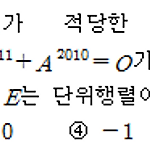 이차정사각행렬 \(A\)가 적당한 실수 \(k\) 에 대하여 \[A^{2012} + kA^{2011} =E,\;\; A^{2011} + A^{2010} = O\] 가 성립할 때, 행렬 \(A\) 의 모든 성분의 합은? (단, \(E\) 는 단위행렬이고, \(O\) 는 영행렬이다.) ① \(2\) ② \(1\) ③ \(0\) ④ \(-1\) ⑤ \(-2\) 정답 ⑤