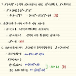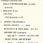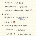 두 이차정사각행렬 \(A, \; B\) 가 \[AB+A^2B=E,\;\;\; (A-E)^2+B^2=O\] 를 만족시킬 때, 에서 옳은 것만을 있는 대로 고른 것은? (단, \(E\) 는 단위행렬이고, \(O\) 는 영행렬이다.) ㄱ. \(B\) 의 역행렬이 존재한다. ㄴ. \(AB=BA\) ㄷ. \(\left ( A^3 -A \right )^2 +E=O\) ① ㄴ ② ㄷ ③ ㄱ, ㄴ ④ ㄱ, ㄷ ⑤ ㄱ, ㄴ, ㄷ 정답 ⑤